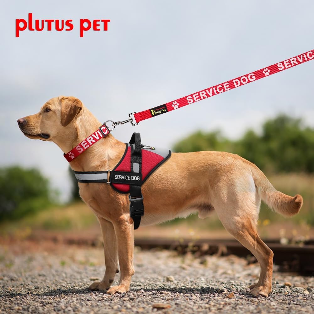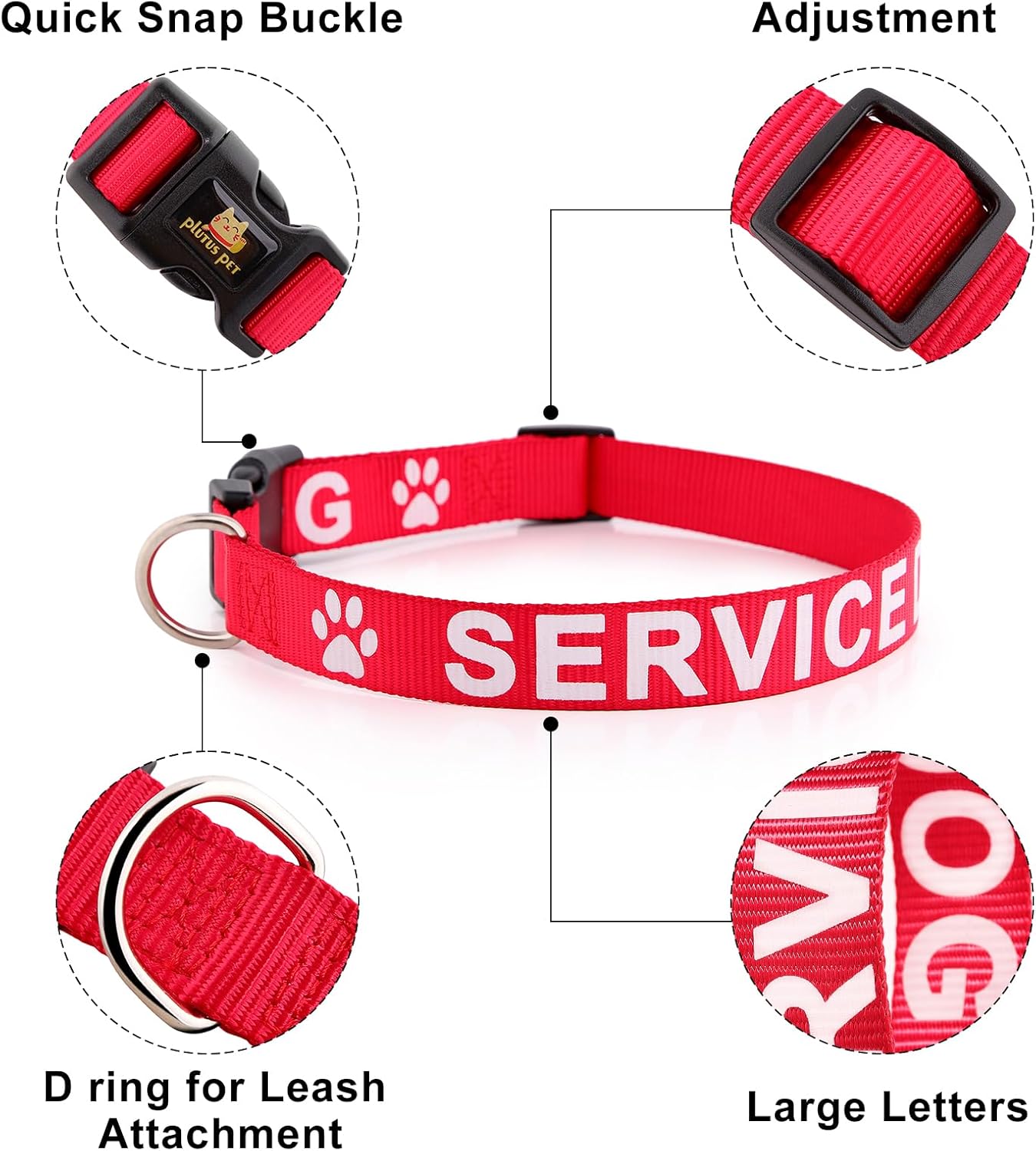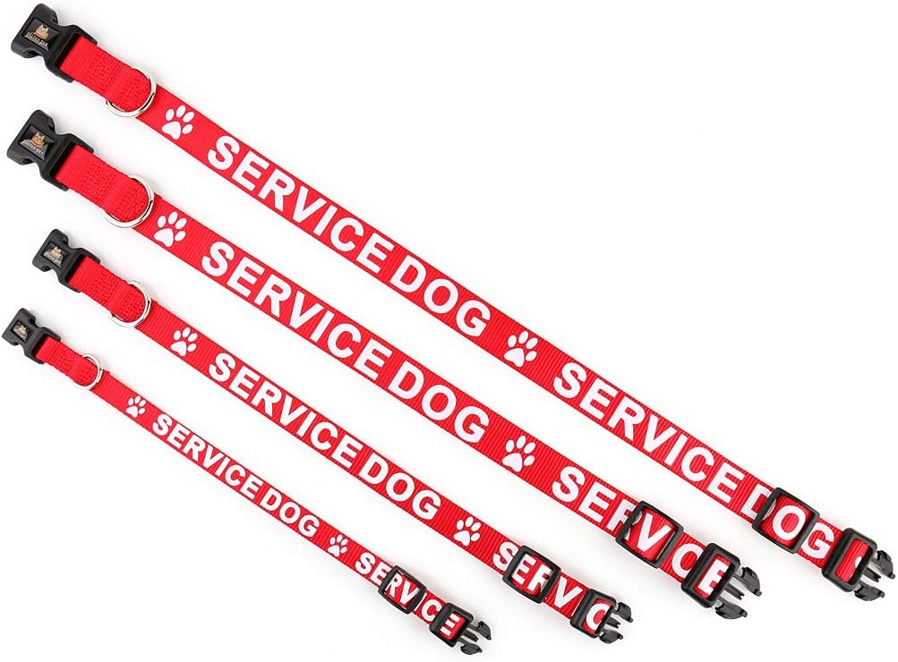 Plutus Pet Service Dog Collar Printed in Large Letters on Nylon Webbing Prevents Accidents by Warning Others of Your Dog in Advance Two Colors Four Sizes Neck 10-16 inch Small Color Red