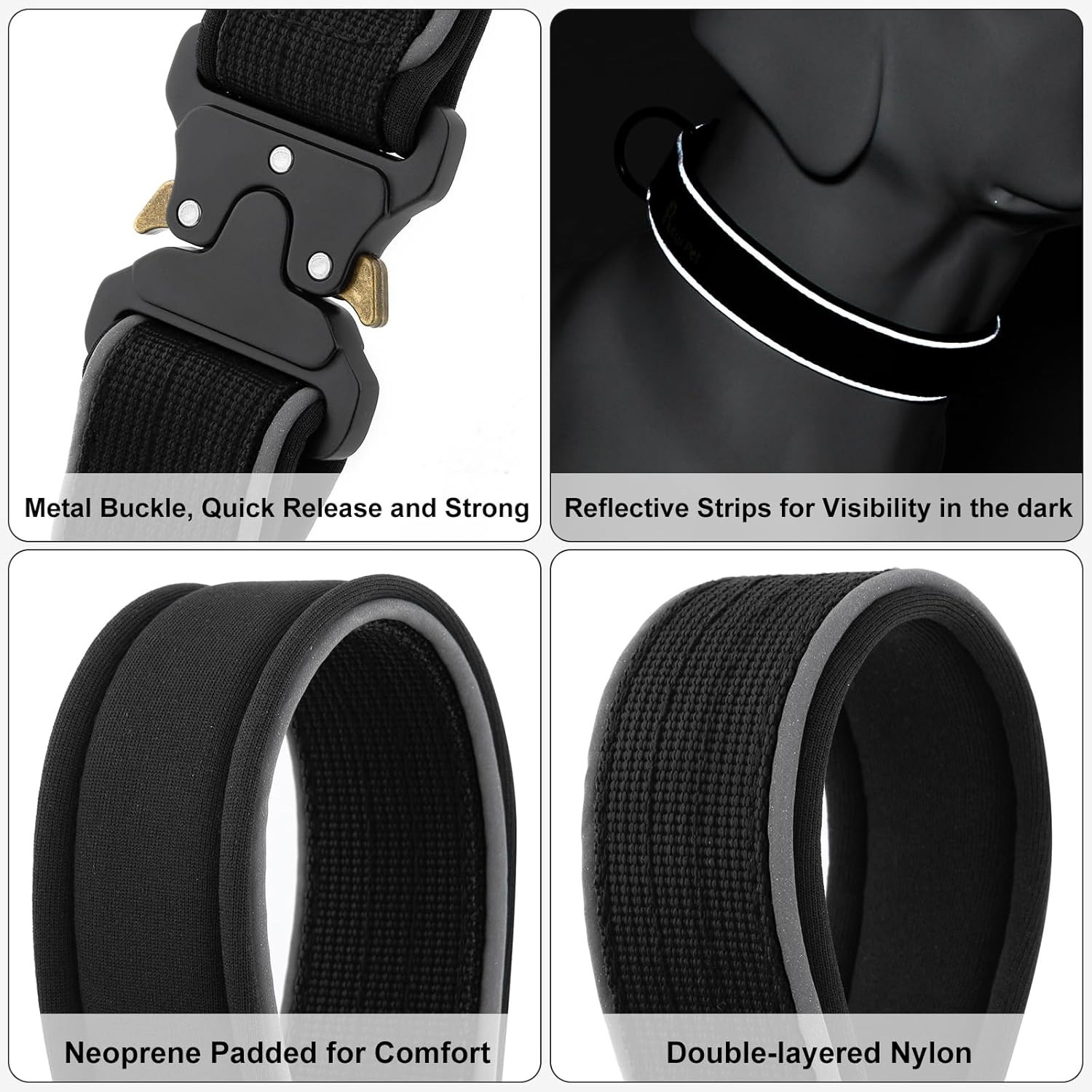 • Soft Neoprene Padded Comfort. Comfort is key for our four-legged friends. That’s why our military collar features soft padding, providing your dog with comfort during walks, hikes, or training sessions. Say goodbye to chafing or discomfort – our collar keeps your pet content and secure.