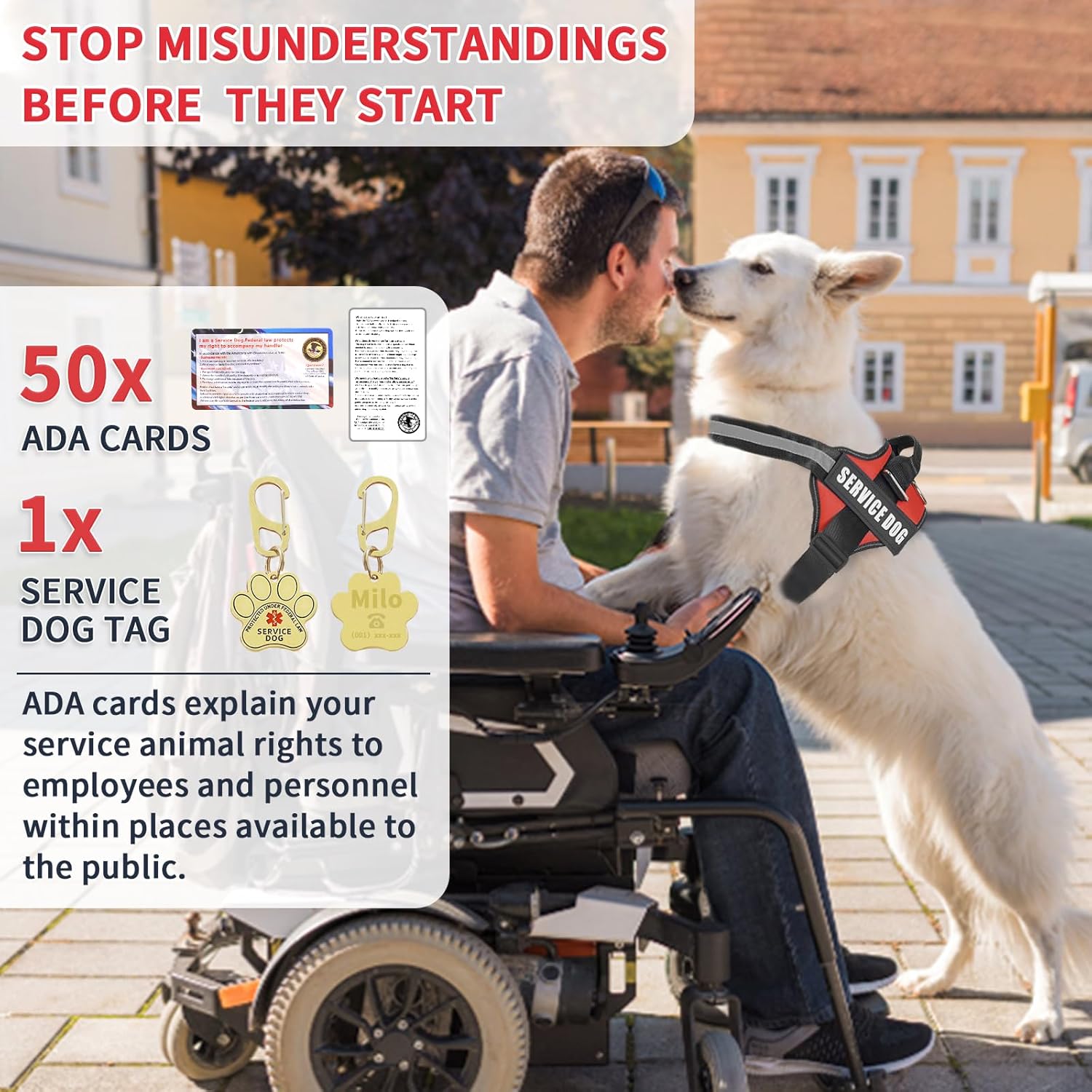 Service Dog Vest ID Tag + 50 ADA Information Cards Service Dog Harness in Size X Small Metal Dog Tag has Ruggedized Clip 2-Sided Service Animal Cards,ESA