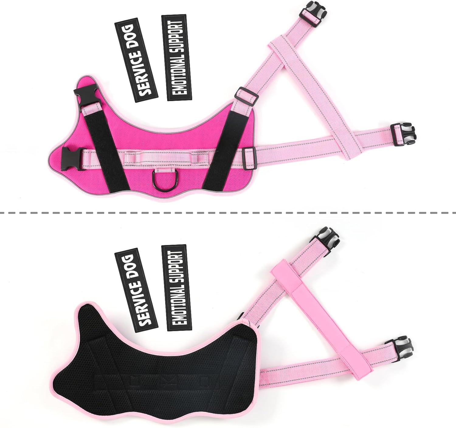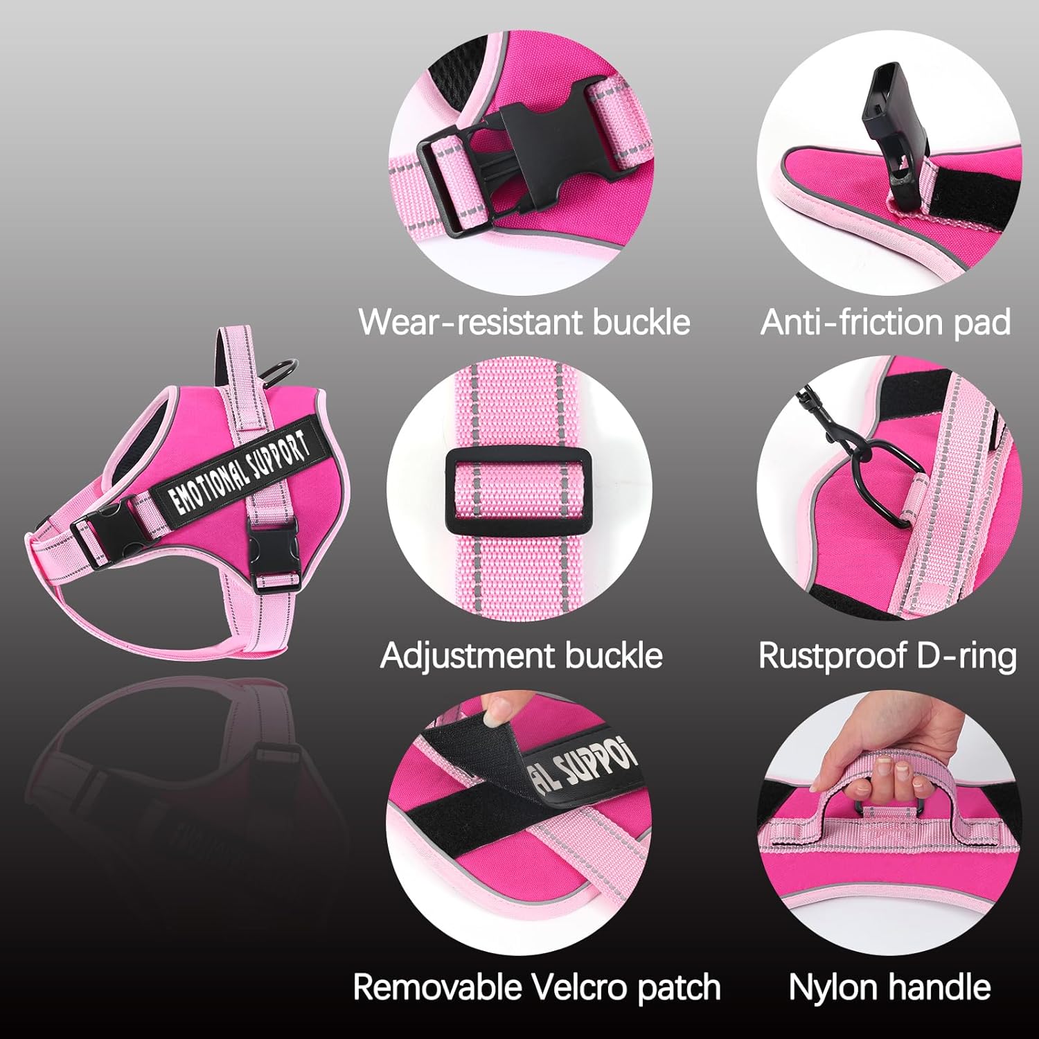 - CONVENIENT TO WEAR DOG SERVICE VEST: Emotional support dog vest made of oxford fabric, scratch-resistant, abrasion resistant, durable, lightweight and soft. Simple switch design makes it easy to put on and take off. The included service dog patch is durable and removable at will. Depending on your needs the dog work harness can be available in a variety of models such as therapy dog vest, in training dog harness, emotional support dog vest, calming harness.